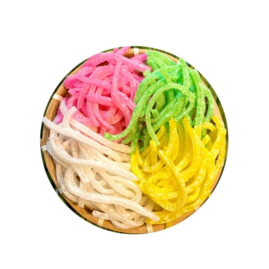 - Mứt dừa sợi: Sợi mứt dài, mỏng, vị ngọt bùi tự nhiên: